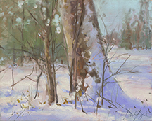 After the brief morning intro, a very hands-on approach to the class, gets students mixing colors and preparing to paint. Students will work in their own style/technique so that the finished work is their own. Douglas will overview his palette and concepts that his work entails. Students will mix paints and learn to mix basic strings of color to help comprehend how this preparation makes the painting process a little simpler and gets a working understanding of the value/strings of color. Students will work from wonderful photos of Winter that Douglas provides.