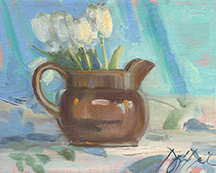 This exciting class will cover the basic principles of oil painting with regard to painting florals, and still lifes - beautiful florals, some fruits and vegetables and maybe even a donut or a few! An exciting time in Holland, MI, this workshop falls just before the annual Tulip Festival. Includes interesting and memorable discussions on composition, massing, building form, light and shadow: and depending on your own style, knowing when a work is finished (learning how to not overwork your painting). Douglas delivers sound principles of painting that are an incredible foundation for your painting, whether a beginner or seasoned professional.