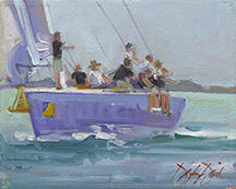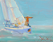 Class will cover the basic principles of oil painting with regard to painting boats. After the basics are covered, we will start by painting some basic boats and move up to more complicated sailboats throughout the next couple of days. For those who have studied with Douglas before, this overview of principles is always a good review, and no matter what the subject, these principles are key, and new discussions and tips are added each season. Each day’s demo will include simple discussions on composition, massing, building form, light and shadow, near and far, capturing and developing atmospheric distance, and depending on your own style, knowing when a work is finished (learning how to not overwork your painting). Students will work in their own style/technique so that the finished work is their own. Douglas will overview his palette and concepts his work entails.